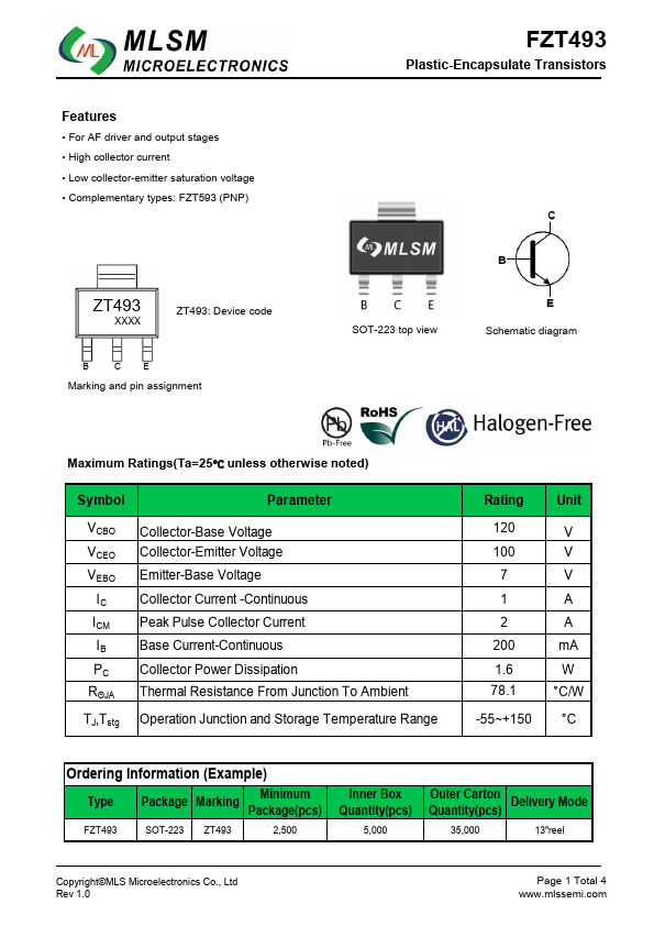 | Datasheet | FZT493-MLSM.pdf |