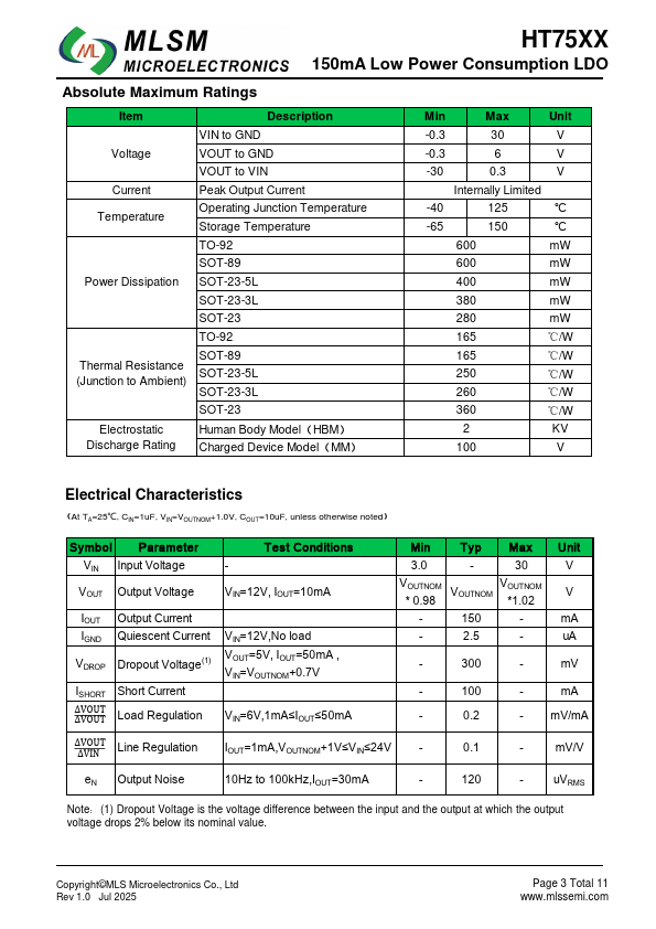The HT75XX series are highly accurate, LDO Voltage Regulators that are manufactSu1reD2d using CMOS technology and the input voltagDe1of HT75XX series is in Excess of 30V.
