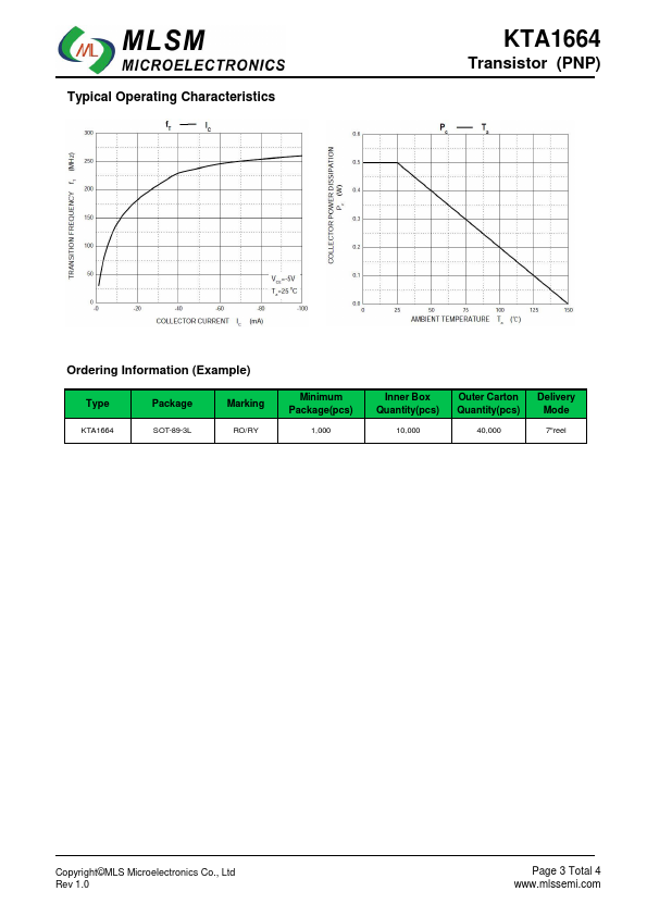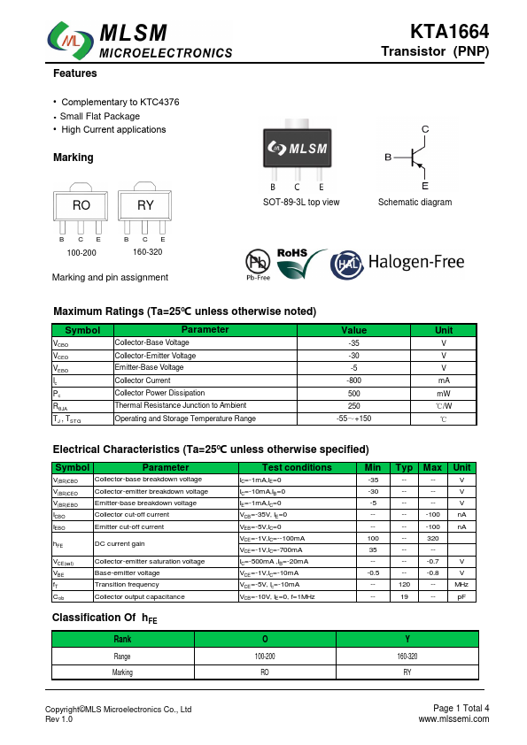 KTA1664 | PNP Epitaxial Planar Transistors | WEITRON |