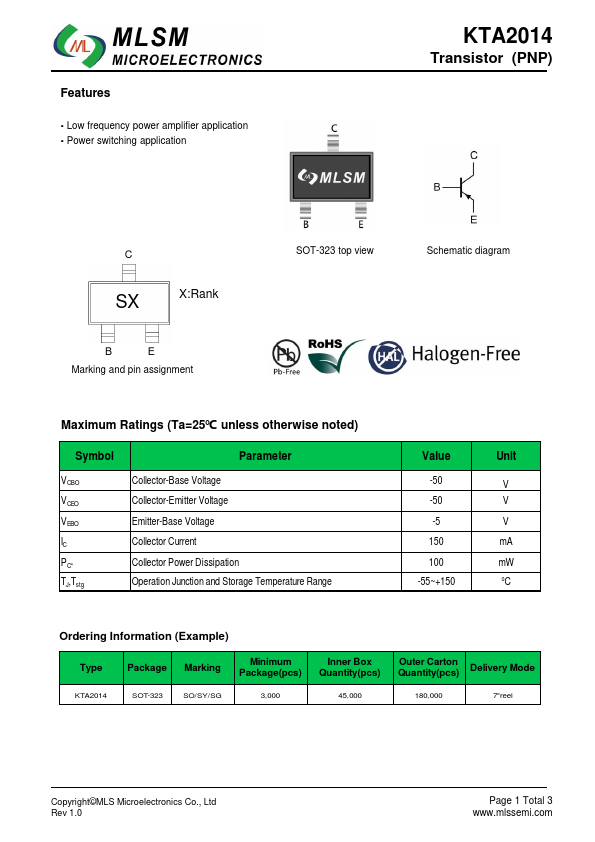 KTA2014 | PNP Silicon Epitaxial Planar Transistor | GME |