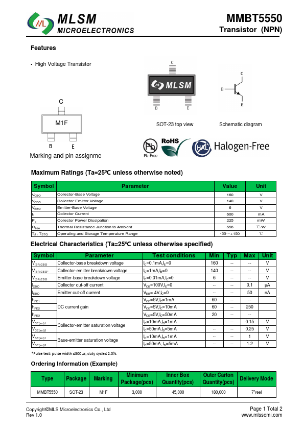 MMBT5550 | NPN Silicon Epitaxial Planar Transistor | GME |