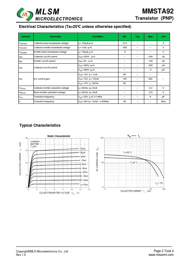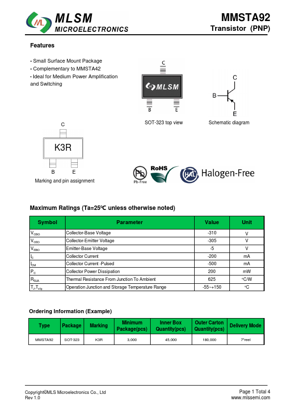 MMSTA92 | PNP Silicon Epitaxial Planar Transistor | GME |