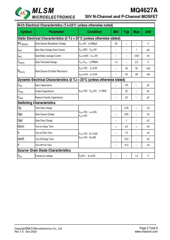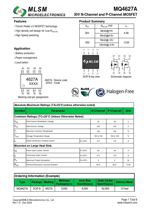 | Description | 30V N-Channel and P-Channel MOSFET |