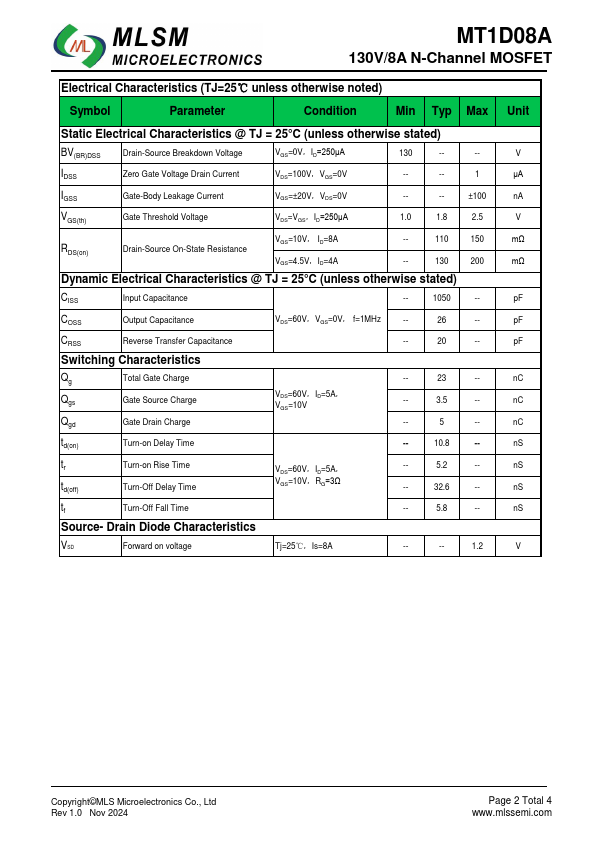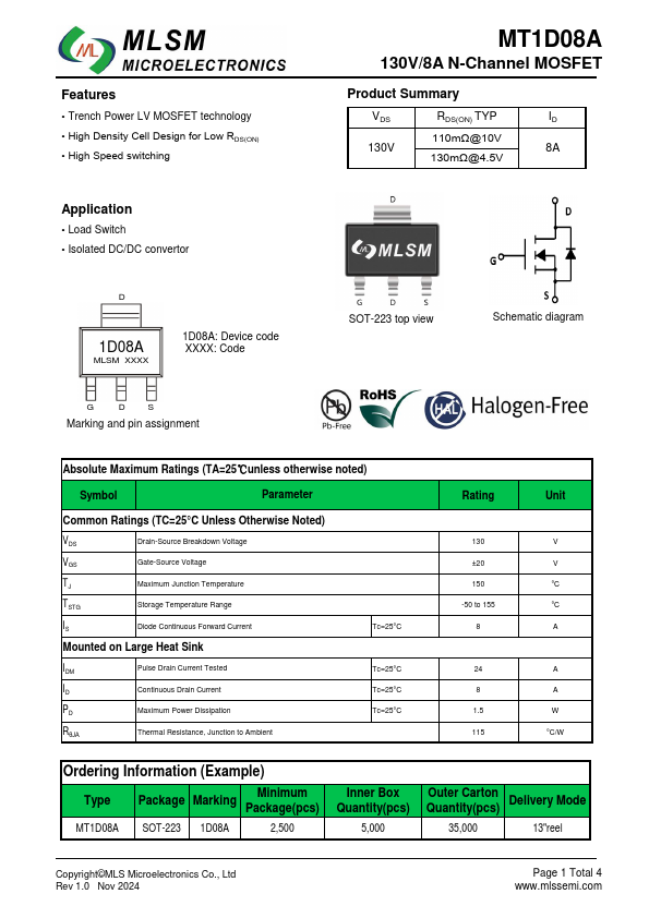 MT1D08A datasheet by MLS Microelectronics.