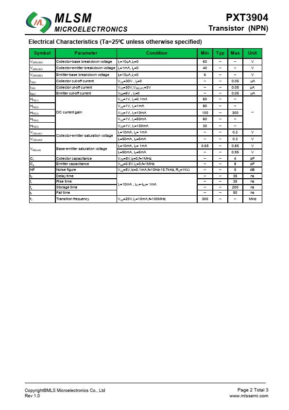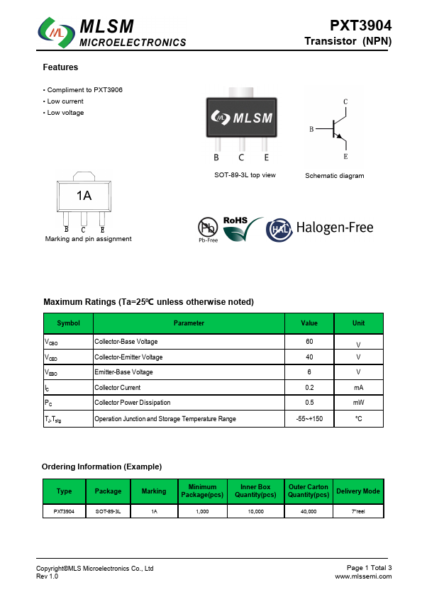 PXT3904 | NPN Silicon Epitaxial Planar Transistor | GME |