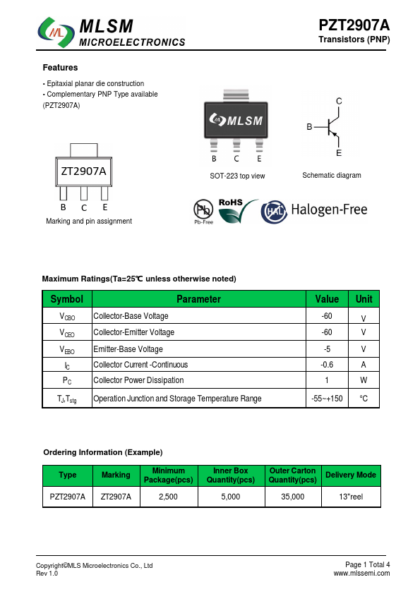 | PZT2907A | PNP Silicon Epitaxial Transistor | ON Semiconductor | |