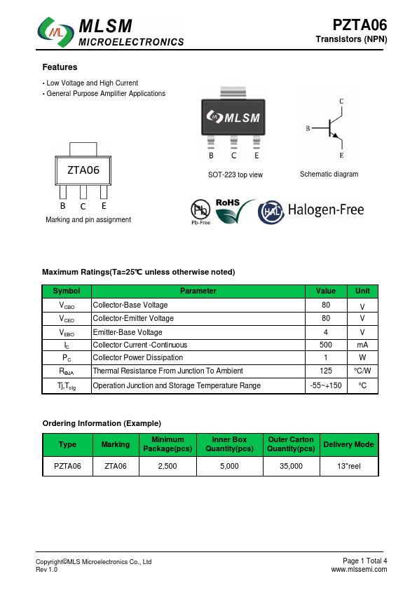 | PZTA06 | NPN General Purpose Amplifier | Fairchild Semiconductor | |