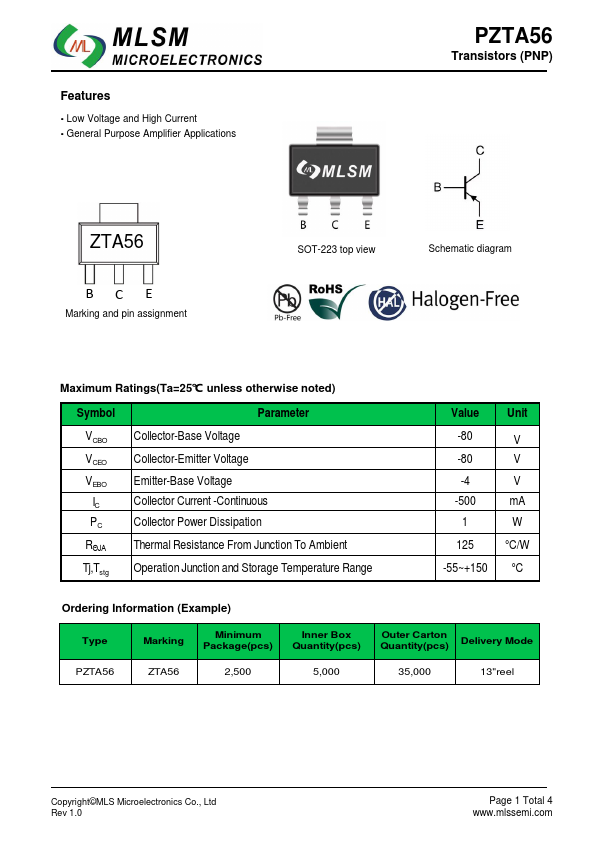 | Datasheet | PZTA56-MLSM.pdf |