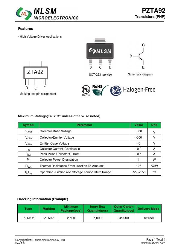 | Datasheet | PZTA92-MLSM.pdf |
