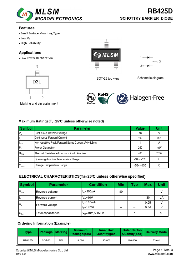 RB425DS | Schottky Barrier Rectifier | MCC |