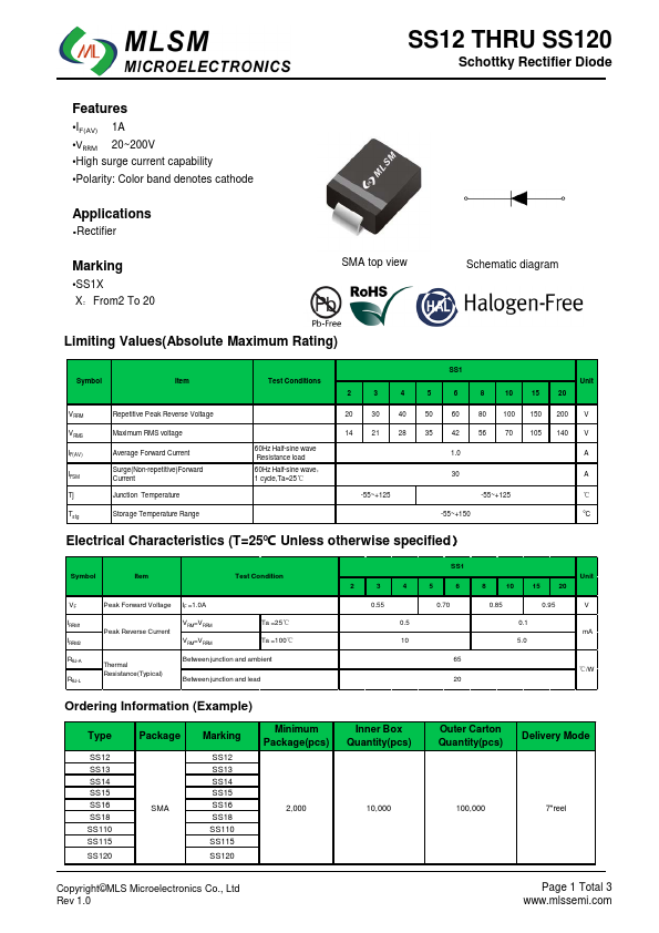 SS12 THRU SS120 Schottky Rectifier Diode.