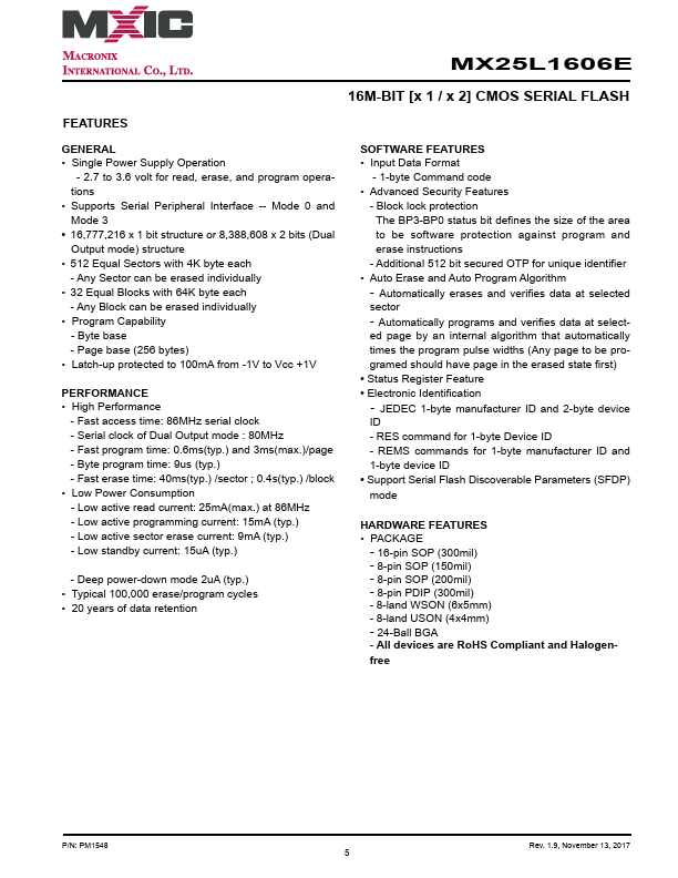 MX25L1606E Key Features
