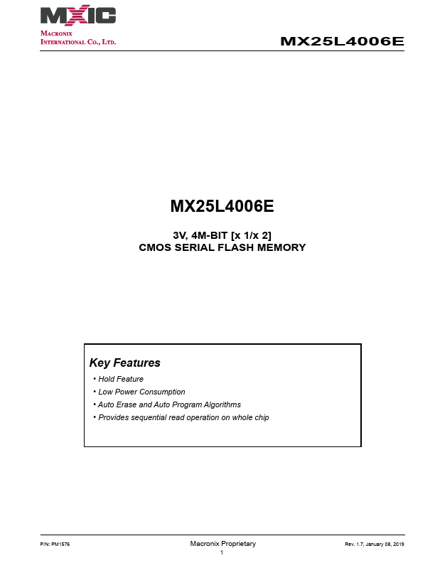 MX25L4006E Key Features