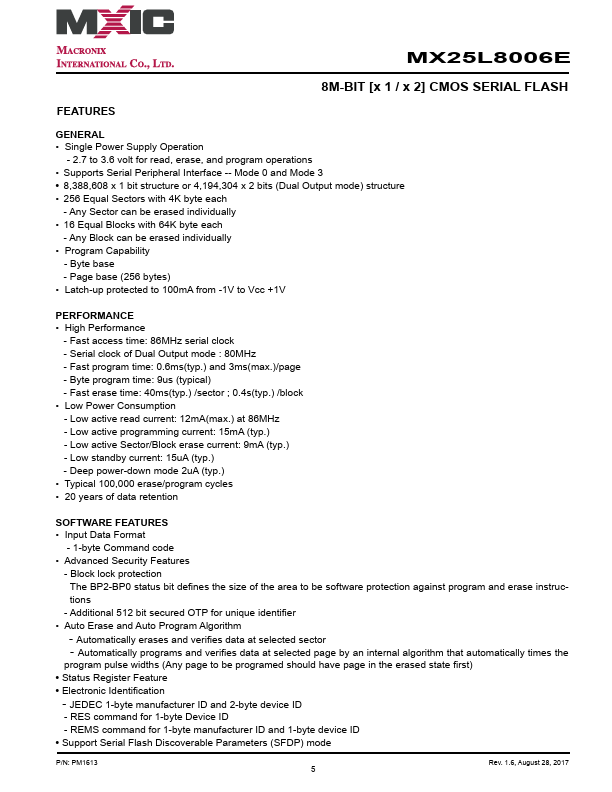 MX25L8006E Key Features
