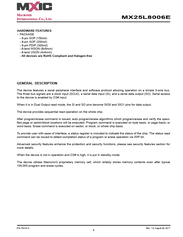 MX25L8006E Overview