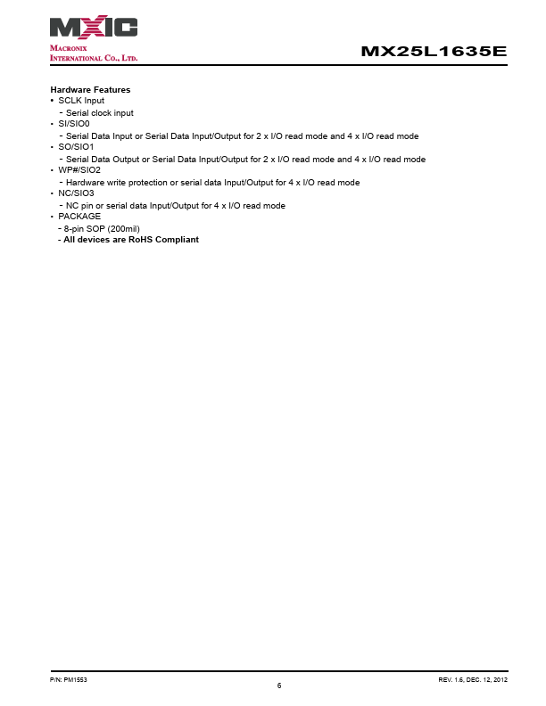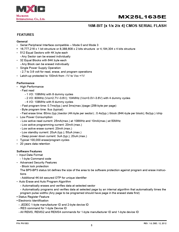 MX25L1635E Key Features