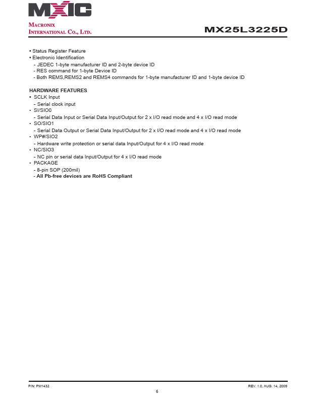 MX25L3225D Key Features