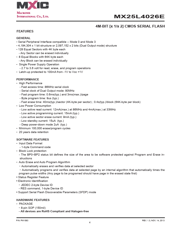 - 2.7 to 3.6 volt for read, erase, and program operations