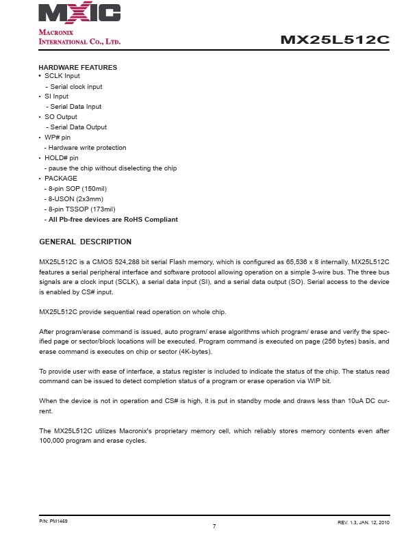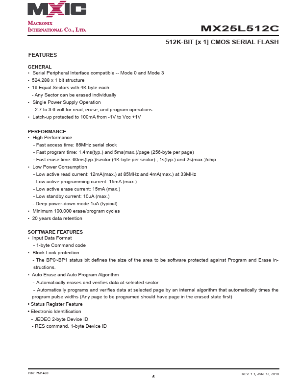 MX25L512C is a CMOS 524,288 bit serial Flash memory, which is configured as 65,536 x 8 internally.