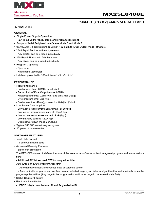 MX25L6406E Key Features