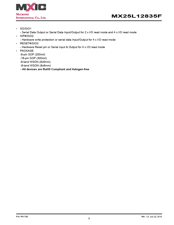 MX25L12835F is 128Mb bits serial Flash memory, which is configured as 16,777,216 x 8 internally. When it is in two or four I/O mode, the structure bees 67,108,864 bits x 2 or 33,554,432 bits x.