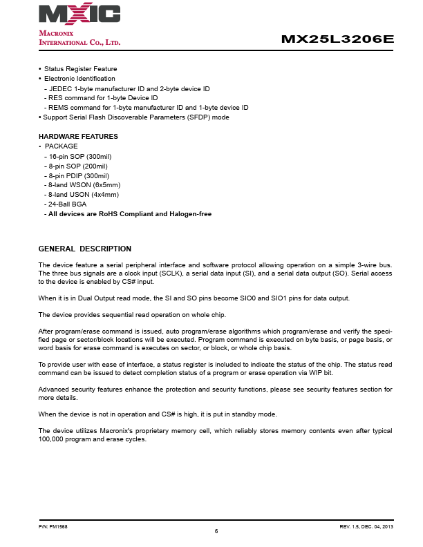 MX25L3206E Key Features