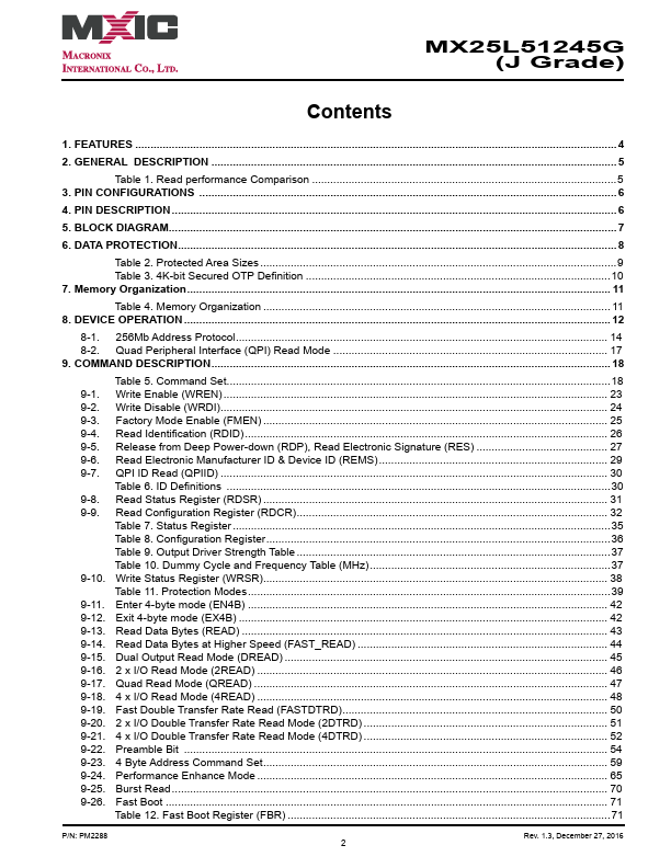 Overview: MX25L51245G (J Grade) MX25L51245G - J Grade 3V, 512M-BIT [x 1/x 2/x 4] CMOS MXSMIO® (SERIAL MULTI I/O) FLASH.