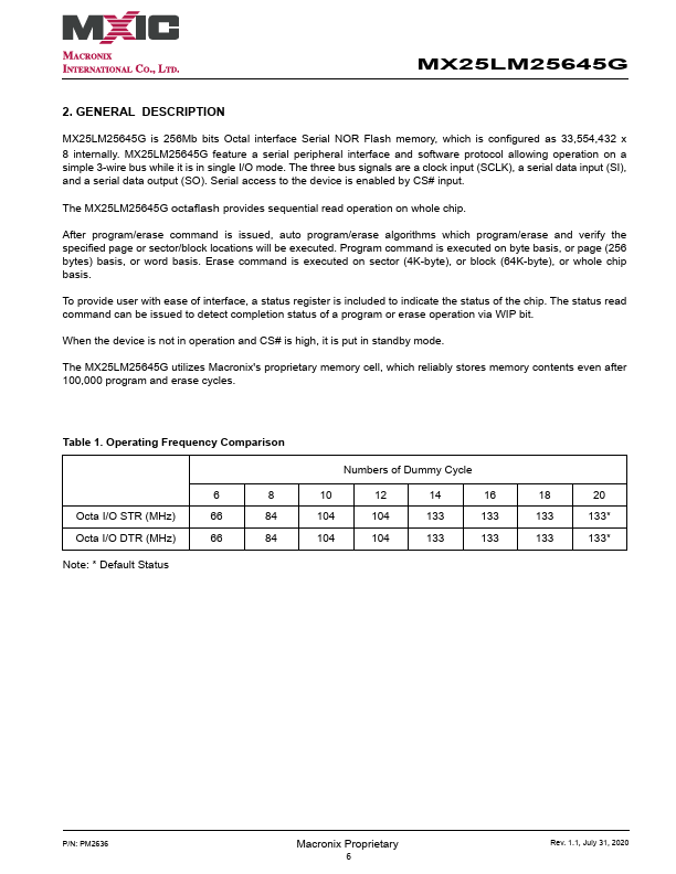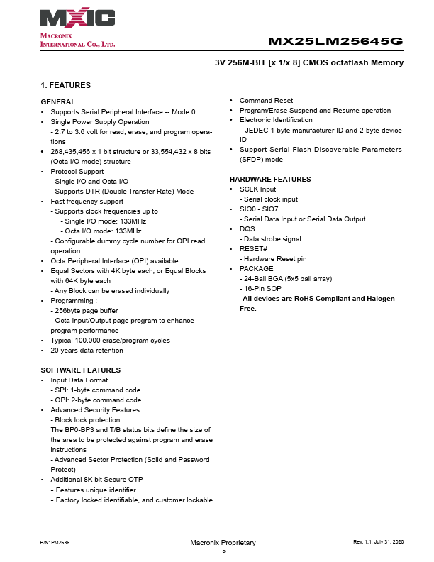 MX25LM25645G is 256Mb bits Octal interface Serial NOR Flash memory, which is configured as 33,554,432 x 8 internally.