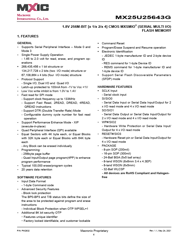 - Single I/O, Dual I/O and Quad I/O