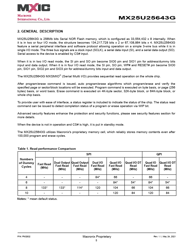 MX25U25643G Overview