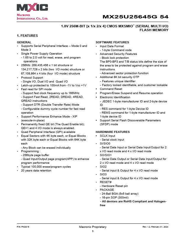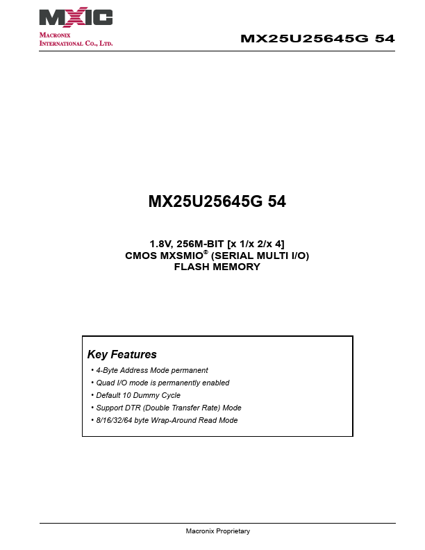 MX25U25645G54 Key Features