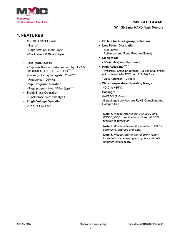 - 1Gb SLC NAND Flash