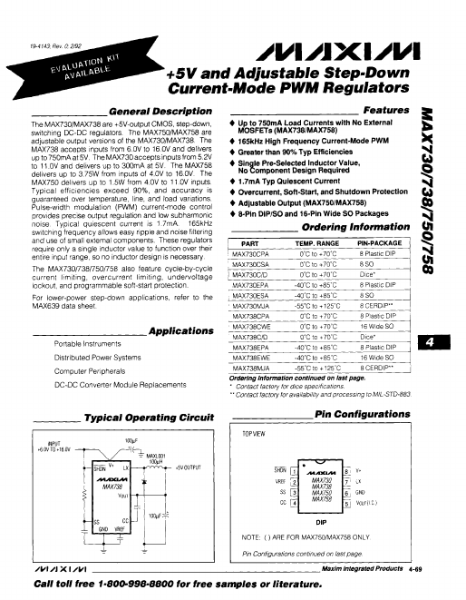 MAX750 Datasheets by Manufacturer