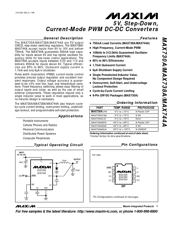 MAX730 is Step-Down Current-Mode PWM DC-DC Converters manufactured by Maxim Integrated.