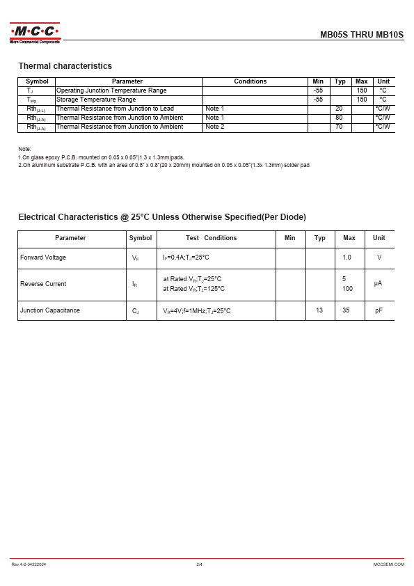 | MB8S | SINGLE-PHASE MINI SURFACE MOUNT BRIDGE RECTIFIER | Dc Components |
