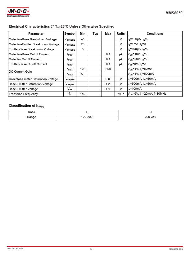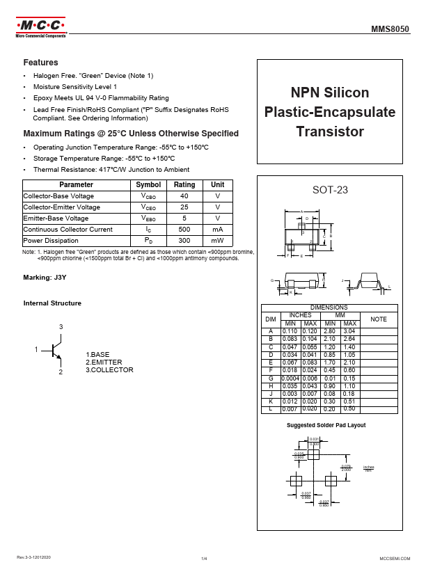 • Operating Junction Temperature Range: -55℃ to +150℃ • Storage Temperature Range: -55℃ to +150℃ • Thermal Resistance: 417℃/W Junction to Ambient
