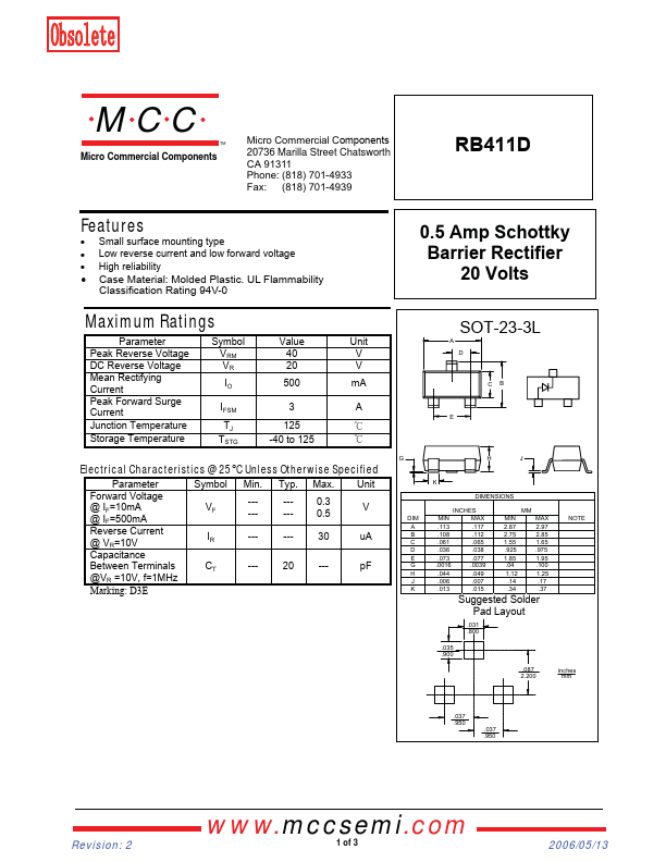 | Datasheet | RB411D_MicroCommercialComponents.pdf |