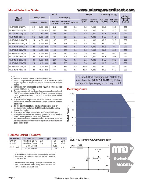This datasheet PDF includes multiple part numbers: MLSR124S, MLSR105S. Please refer to the document for exact specifications by model. |