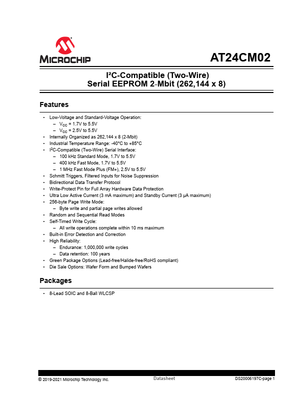 AT24CM02 I²C-patible (Two-Wire) Serial EEPROM 2‑Mbit (262,144 x.