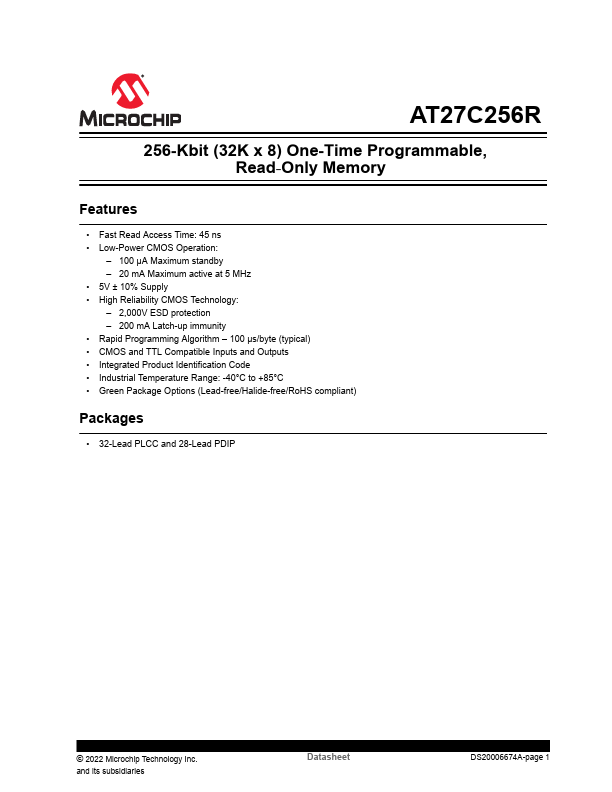 | Description | 256-Kbit One-Time Programmable Read-Only Memory |