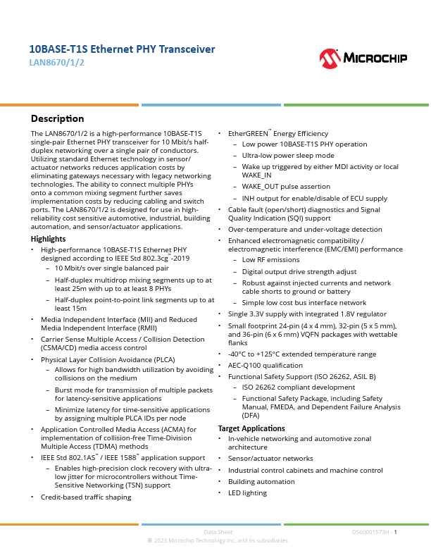 | Description | 10BASE-T1S Ethernet PHY Transceiver |