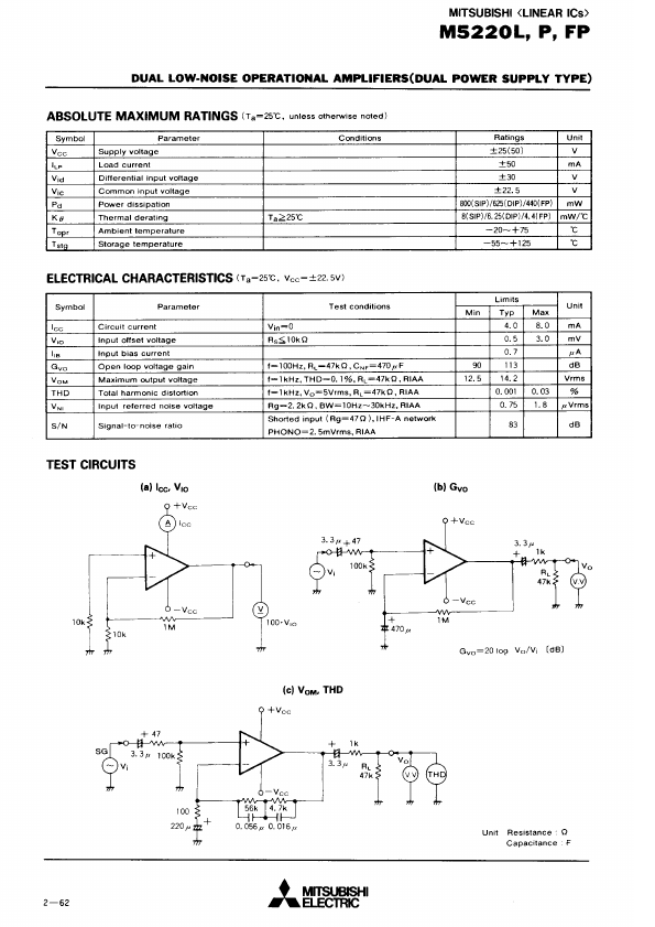 | M5220P | Dual Low Noise Operational Amplifiers |