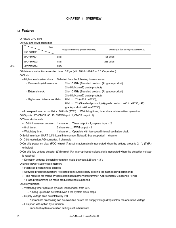 U16898EJ6V0UD00 (6th edition) Date Published February 2009 NS © Printed in Japan 2003 CHAPTER 1 OVERVIEW 1.1.