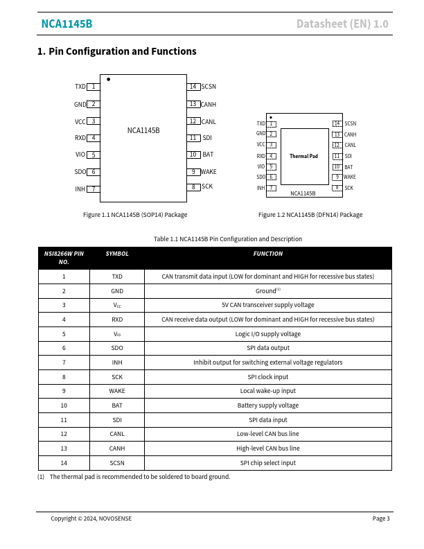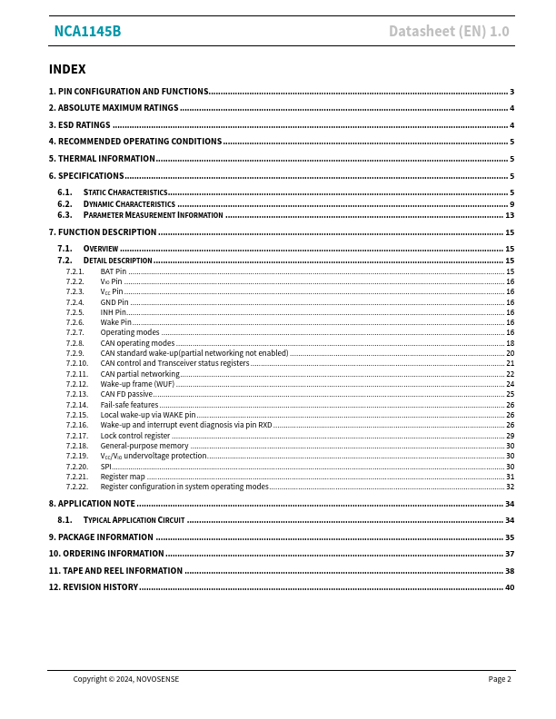 NCA1145B is a high-speed CAN transceiver providing an interface between a Controller Area Network (CAN) protocol controller and the physical two-wire CAN bus. The transceiver consumes very low power in Standby and Sleep modes. Meanwhile, NCA1145B supports CAN Partial Networking compliant to ISO11898-2:2024 by selective wake-up function. NCA1145B supports ‘FDpassive’ to ignore CAN FD frames while waiting for a valid wake-up frame in low power mode. It allows the CAN controllers that do not need CAN FD function to remain in Standby/Sleep mode during CAN FD communication in the network without generating bus errors.