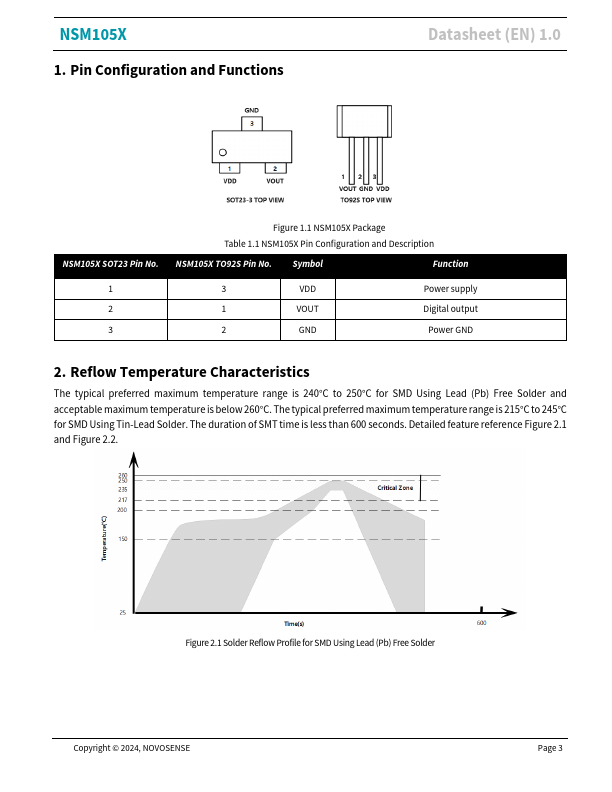 NSM105X High sensitivity, low power consumption TMR magnetic switch/latch Datasheet (EN) 1.0 Product Overview NSM105X magnetic switch and latch series chips integrate tunnel magneto resistive (TMR) sensors and digital circuits for position detection. NSM105X converts the change of magnetic field into switch signal to achieve accurate position detection. Output interface supports open drain and push-pull.