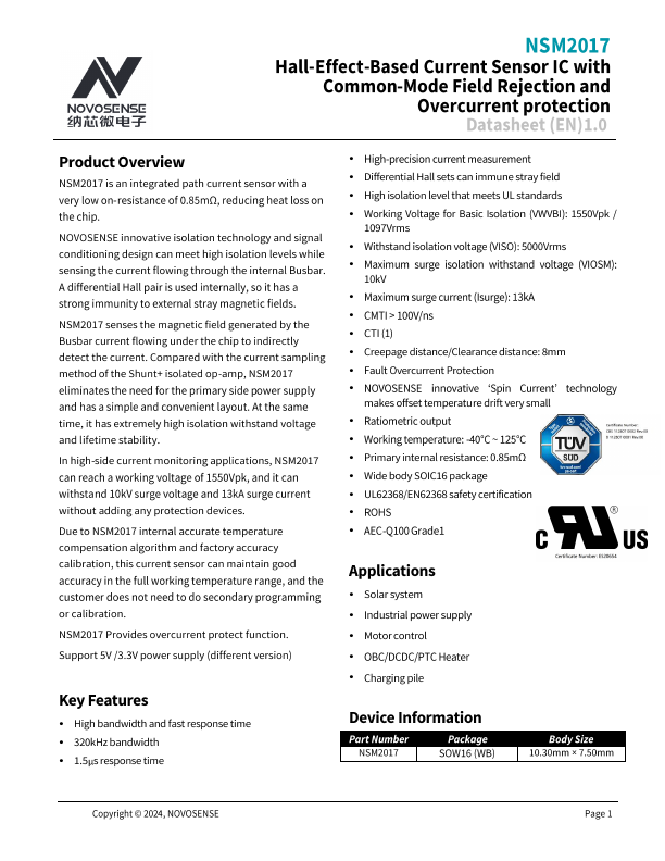 | NSM2013-Q1 | Hall-Effect-Based Current Sensor IC |