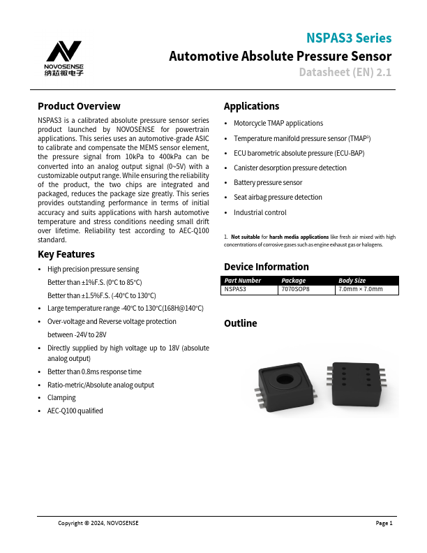 - Directly supplied by high voltage up to 18V (absolute analog output)