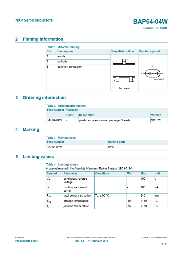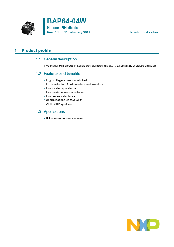 Two planar PIN diodes in series configuration in a SOT323 small SMD plastic package.