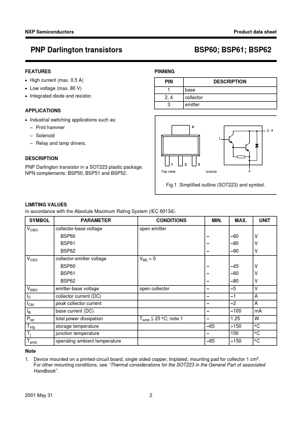 | BSP62 | PNP Darlington transistors |