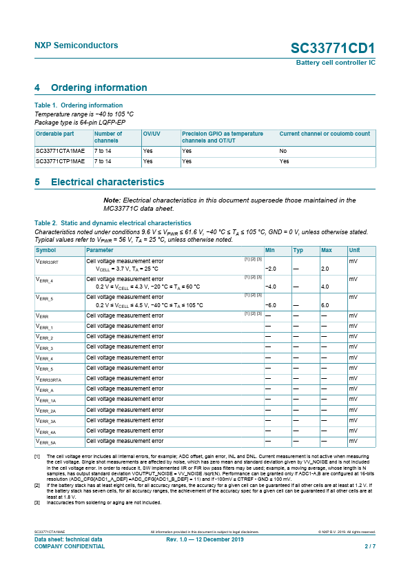The MC33771C is a SMARTMOS lithium-ion battery cell controller IC designed for automotive applications, such as hybrid electric (HEV) and electric vehicles (EV) along with industrial applications, such as energy storage systems (ESS) and uninterruptible power supply (UPS) systems. The device performs ADC conversions of the differential cell voltages and current, as well as battery coulomb counting and battery...